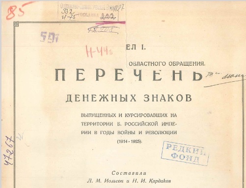 Перечень денежных знаков выпущенных и курсировавших на территории бывшей Российской Империи в годы войны и революции (1914-1923), 1923