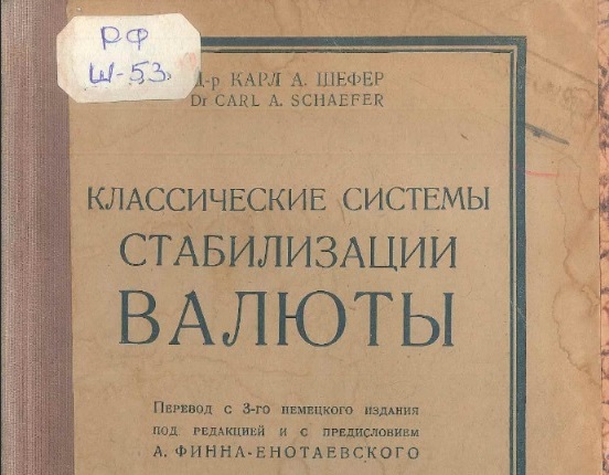 Шефер, Карл А. Классические системы стабилизации валюты, 1923