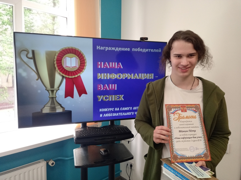 В рамках проекта "Изучаем читателя. Изучаем чтение" Библиотечно-информационный комплекс (БИК), деканат Факультета экономики и бизнеса, Профком Финуниверситета и в этом учебном году провели конкурс для студентов Факультета экономики и бизнеса "Наша информация - Ваш успех". Победа в конкурсе - приятная неожиданность, на долгую память о студенчестве. Как и каждый год, сотрудники факультетской библиотеки № 2 активно общались с молодыми читателями и наблюдали. Формула успеха простая: активности, взаимодействие с БИК + хорошая учеба = ПОБЕДИТЕЛЬ. Награждение состоялось! Поздравляем самых активных и любознательных! Среди студентов 1 курса - это Кривеншев Сергий 2 курса - Монин Петр 3 курса - Шошина Кристина PS: Кристина сейчас на практике и награда ее обязательно дождется. Маленьких и больших побед, друзья! До встречи на новых конкурсах в новом учебном году.