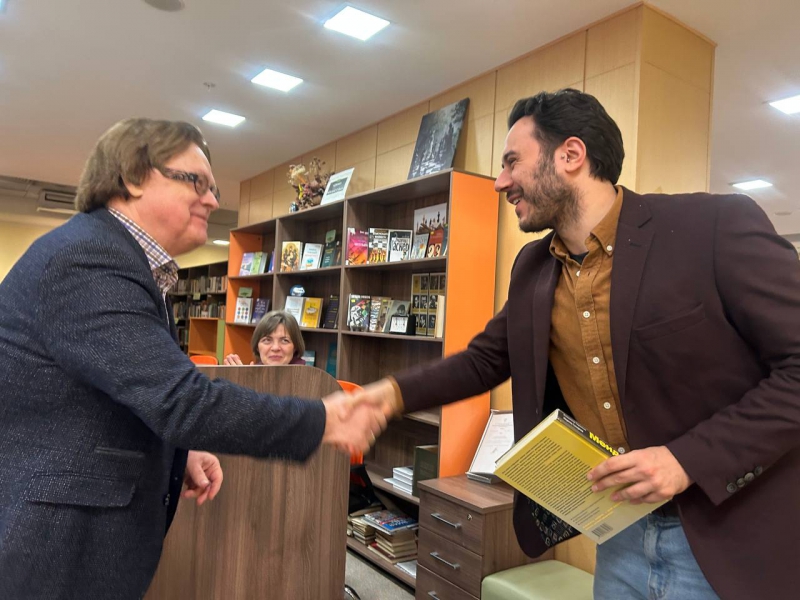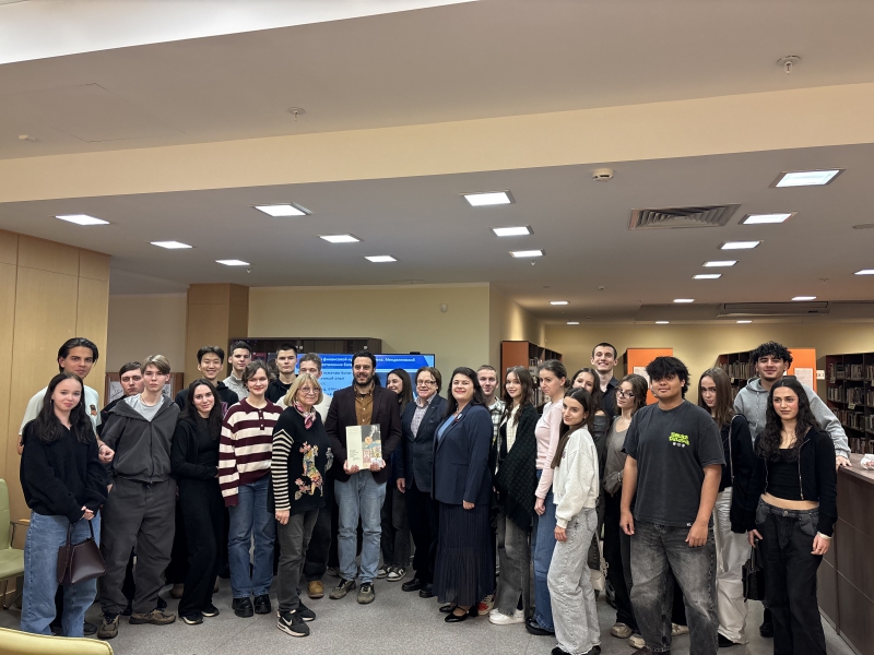 В.И. Таранков и М.О. Сахарова подчеркнули огромную ценность личной библиотеки Д.И. Менделеева, часть которой сохранилась и находится в фондах Санкт-Петербургского государственного университета, акцентировав внимание, что «для ее сохранности, как государственного достояния, потребовалось вмешательство П.А. Столыпина и Николая II». В завершении вечера авторы ответили на многочисленные вопросы участников встречи. Кроме того, Владимир Иванович и Марина Олеговна подготовили приз участнику, который первый ответил на вопрос "Сколько лет было Д.И. Менделееву, когда он создал Периодическую систему химических элементов"? За правильный ответ (35 лет) ассистент Кафедры гуманитарных наук Факультета социальных наук и массовых коммуникаций Финансового университета Эдоардо Антонио Базилико получил в подарок книгу: Таранков В.И. Менделеев: Экономическая независимость России /В.И. Таранков, М.О. Сахарова.-Москва: Бослен: Русская речь, 2024.-320 с.