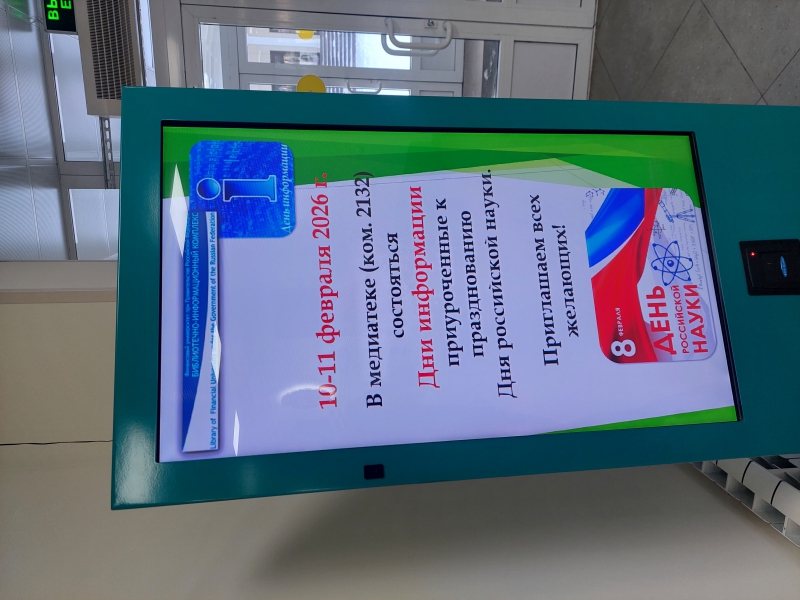 10-11 февраля 2026 г. в Библиотечно-информационном комплексе - медиатеке и коворкинге Факультета информационных технологий и анализа больших данных (4-й Вешняковский пр., д. 4, ком. 2132,2121) - прошли традиционные Дни информации для профессорско-преподавательского состава, аспирантов, магистров и бакалавров, приуроченные к Дню российской науки. Информация о проведении Дней информации заранее была размещена в информационных киосках учебных корпусов. Все ключевые моменты содержательной и разнообразной программы были освещены в видеоанонсе. Сотрудники библиотеки организовали цикл книжных тематических выставок «Наука сквозь века: от прошлого к будущему», приуроченные к Дню российской науки, объединяющие фундаментально- прикладные научные труды, монографии, научно-популярную и справочную литературу в свете современных информационных и цифровых технологий. Книги, представленные на выставках, привлекли внимание и вызвали интерес среди студентов и преподавателей. Авторы учебников выразили нам особую благодарность за возможность представить свои издания на книжной выставке. В коворкинге был представлен информационный стенд « 2026 - Год единства народов России», который кроме фактографических сведений о событии предоставляет возможность доступа через цифровые ссылки к книгам, отражающим разные аспекты жизни народов нашей многонациональной страны. В медиатеке демонстрировалась видеопрезентация «Наукограды России: наука, инновации, будущее», в которой отражен образ наукограда как центра уникальных разработок российских ученых и их значительное влияние на глобальное научное сообщество. Виртуальная экскурсия «Москва-научная столица» - это заманчивая возможность прогуляться по самым значимым и интересным научным локациям. В Дни информации у всех желающих была реальная возможность познакомиться с книжным фондом, информационными сервисами и услугами, со справочно-библиографическим аппаратом, получить индивидуальные консультации и ответы на интересующие вопросы. Ждем вас на новые Дни информации и всегда готовы помочь.