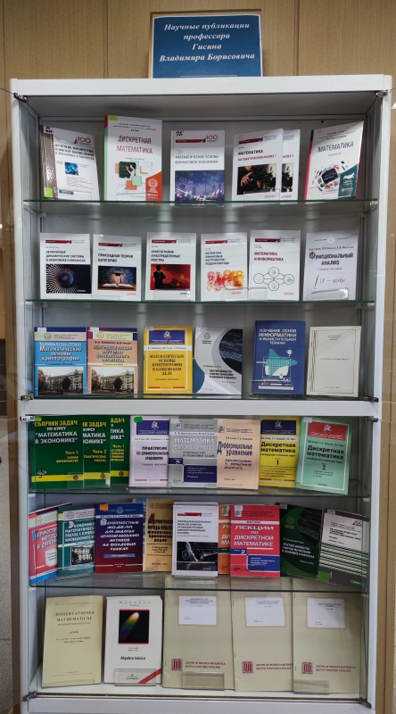 В Библиотечно-информационном комплексе открылась выставка к юбилею Владимира Борисовича Гисина. С экспозицией можно ознакомиться в библиотеке по адресу: Москва, Ленинградский проспект, 51, корпус 1, комн. 0116. Владимир Борисович Гисин - кандидат физико-математических наук, профессор Кафедры математики и анализа данных Факультета информационных технологий и анализа больших данных. В Финансовом университете при Правительстве Российской Федерации работает с 1996 года. В течение 10 лет входил в состав Федерального экспертного совета Министерства образования (секция информатики). В.Б. Гисин награждён медалью «За доблестный труд», грамотами Министерства образования СССР и Российской Федерации, нагрудным знаком «Почётный работник высшего профессионального образования Российской Федерации» (Указ Президента от 10.05.2011). В 2011 году Владимиру Борисовичу присвоено звание «Заслуженный работник высшей школы Российской Федерации», а в 2016 году — звание «Заслуженный профессор Финансового университета». В соответствии с распоряжением Правительства РФ от 27 ноября 2013 года № 2211-р, ему объявлена Благодарность Правительства Российской Федерации за акивное участие в подготовке кадров высшей квалификации и многолетний добросовестный труд. На выставке представлены монографии и учебные издания, подготовленные В.Б. Гисиным, которые уже много лет являются основными для изучения математических дисциплин для подготовки специалистов финансово-экономического профиля в Финансовом университете и во многих крупнейших вузах страны. Посетители выставки могут ознакомиться с изданиями из фондов Библиотечно-информационного-комплекса Финансового университета, а также книгами из личной коллекции Владимира Борисовича на русском и английском языках.