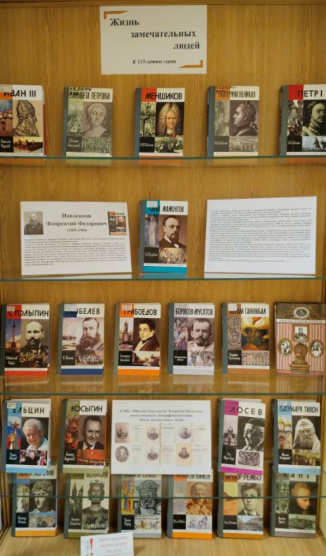 Библиотечно-информационный комплекс приглашает на выставку книг серии "Жизнь замечательных людей" к 135-летию серии. С экспозицией можно ознакомиться в библиотеке по адресу: Москва, ул. Кибальчича, д. 1, 2 этаж, холл. Книжная серия ЖЗЛ является универсальной биографической библиотекой, энциклопедией человеческого гения. Это книги-биографии писателей, художников, учёных, полководцев, исторических деятелей, музыкантов, политических деятелей, поэтов, философов. Серия впервые выпускалась в 1890—1924 годах издательством Ф. Ф. Павленкова под тем же названием (всего вышло двести биографий, после 1900 года были только перепечатки). С тех пор предпринимались неоднократные попытки возродить издание, но осуществить это удалось лишь Максиму Горькому: начатая заново серия выпускалась в 1933—1938 годах «Журнально-газетным объединением» с нумерацией от единицы. После 1938 года серия выпускалась «Молодой гвардией» с продолжающейся нумерацией выпусков; с 2001 года нумерация стала двойной (с учётом павленковских изданий). К 2010 году общее число выпусков превысило полторы тысячи, а суммарный тираж серии превысил сто миллионов экземпляров. Общедоступная павленковская серия «ЖЗЛ» должна была «знакомить читателей с выдающимися деятелями прошлых эпох». Жанровый формат серии определялся просветительскими задачами.