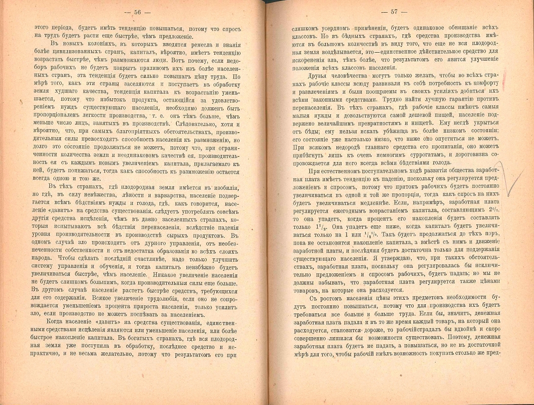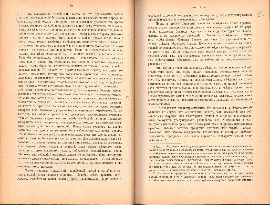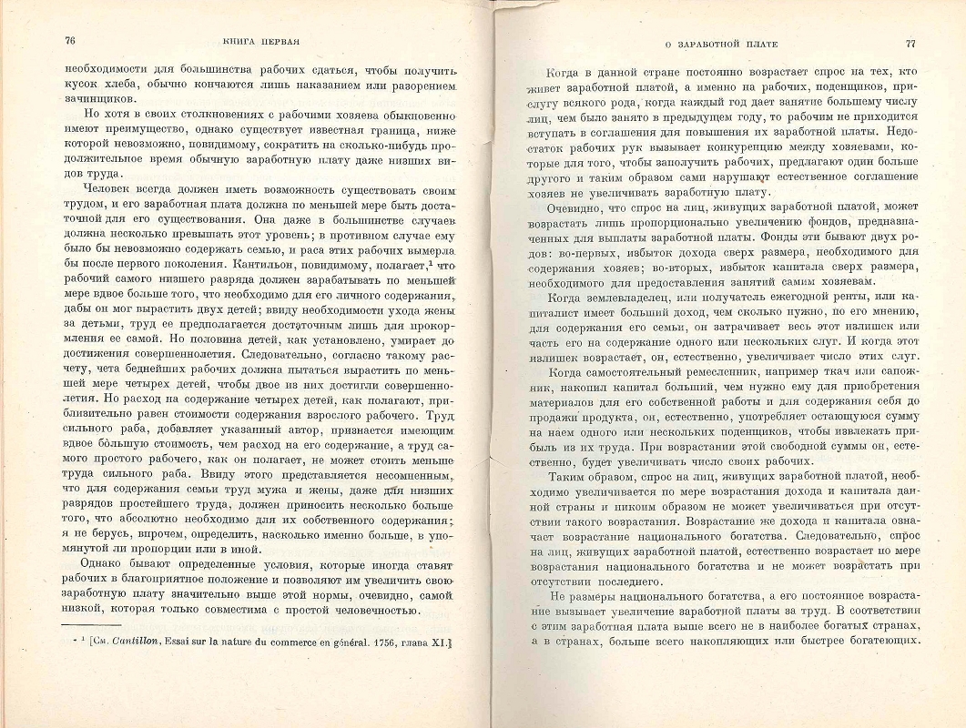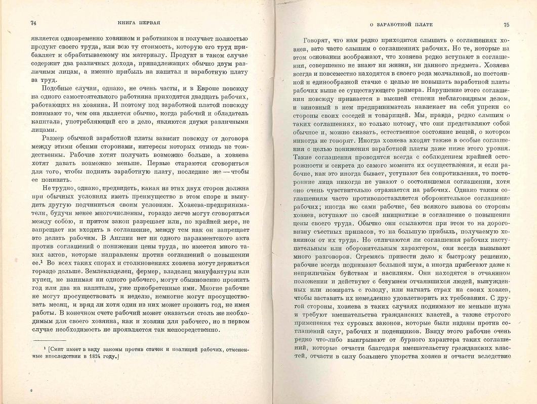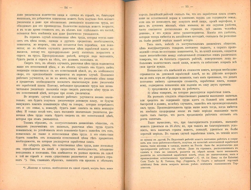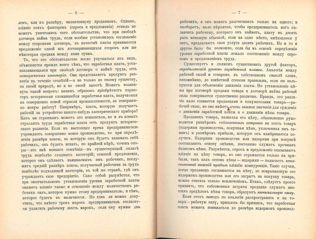Библиотечно-информационный комплекс приглашает на виртуальную выставку "Труд и заработная плата: история вопроса. Из коллекции книжных реликвий". "Труд - вечное естественное условие человеческой жизни и потому он не зависит от какой бы то ни было формы этой жизни,напротив, является одинаково общим для всех её общественных форм" /Карл Маркс/ Еще на заре своего развития, человек понял, что труд можно оценивать. Изначально вознаграждение за него имело натуральную форму. Это было первой своеобразной заработной платой, под которой подразумевалась меновая стоимость определенного вида наемного труда за какой-либо период времени. Спустя некоторое время человек научился соизмерять свой труд и получаемый продукт. Заработная плата как разновидность обмена стала приобретать коммерческий характер. Трудовые взаимоотношения нанимателя и работника строились на взаимной выгоде. С течением времени оказалось недостаточным использование возможностей только натурального обмена, и человек занялся поиском универсального платежного средства. Первые «деньги» возникли естественным путем, то есть они не были специально изготовлены. В разных регионах мира в качестве денег использовали различные вещи (товарные деньги). Например, в Южной Америке и на островах Океании деньгами служили жемчужины и ракушки, в Новой Зеландии - камни с отверстиями посередине. Первые прототипы монет, как утверждают историки, появились в древнем Лидийском царстве, а также в Китае в VII в. до н.э. Теоретические основы концепции заработной платы как цены труда были разработаны А. Смитом и Д. Рикардо. А. Смит считал, что труд вступает в качество товара и имеет естественную цену, то есть «естественную заработную плату». Она определяется издержками производства, в состав которых он включал стоимость необходимых средств существования рабочего и его семьи. А. Смит не проводил различия между трудом и «рабочей силой» и поэтому под «естественной заработной платой» понимал стоимость рабочей силы. Величину заработной платы он определял физическим минимумом средств существования рабочего. Кроме этого, заработная плата включает в себя исторические и культурные элементы. Основу для экономического исследования заработной платы заложил Карл Маркс. В своем главном экономическом произведении «Капитал» он уделил заработной плате значительное внимание. Отдел шестой первого тома «Капитала» так и называется «Заработная плата». К. Марксом сделан вывод о том, что заработная плата в условиях капитализма есть не что иное, как «цена рабочей силы» работника, которую последний продает «владельцу денег», средств производства – капиталисту. К. Маркс установил, что величина заработной платы не сводится к физиологическому минимуму средств существования, она зависит от экономического, социального, культурного уровня развития общества, а также от уровня производительности и интенсивности труда, его сложности и от конъюнктуры рынка. Используемые в настоящее время классические понятия и определения, вошедшие в большинство современных учебников по экономике, разработаны именно К. Марксом. В дореволюционной Российской империи, в фабрично-заводском законодательстве, сформированном после реформ, проведенных Александром II, понятие «заработная плата» отсутствовало. После проведенной в XIX в. п
