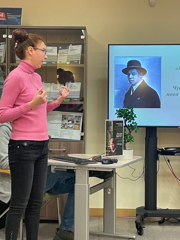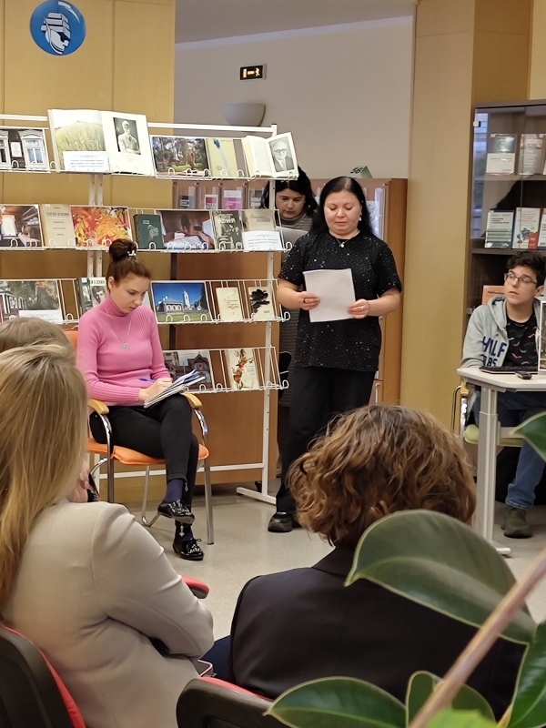 15 октября 2025 г. двери Литературного клуба Финансового университета вновь открылись для почитателей творчества выдающегося русского поэта Сергея Александровича Есенина. Мероприятие было приурочено к 130-летию со дня рождения поэта и организовано Библиотечно-информационным комплексом и Кафедрой гуманитарных наук Факультета социальных наук и массовых коммуникаций. Как отметила Евгения Сергеевна Бужор (руководитель научного студенческого кружка «Философская Москва», доцент Кафедры гуманитарных наук Факультета социальных наук и массовых коммуникаций), обращаясь с приветственным словом к аудитории: «Сегодня встреча посвящена творчеству великого русского поэта: поэта любви, поэта русской природы, которому исполнилось 130 лет со дня рождения. Это коллаборация Литературного клуба и Кафедры гуманитарных наук, в которой принимают участие студенты, аспиранты, преподаватели, сотрудники Библиотечно-информационного комплекса». Далее Диана Борисовна Ермилова (заместитель директора Библиотечно-информационного комплекса) отметила значимость поэзии С. Есенина и обратилась с напутствием к студентам, чтобы и в дальнейшем они продолжали открывать для себя творчество поэта. Наталья Анатольевна Ореховская (заведующий Кафедрой гуманитарных наук Факультета социальных наук и массовых коммуникаций): «Есенин входит в нашу жизнь в начальной школе простыми и понятными стихотворениями, которые остаются в памяти. На протяжении жизни мы к ним возвращаемся. Становимся старше – стихи меняются: про любовь - глубже, про Родину - шире, о природе - с тонкой интимной стороны. Получается, с этим поэтом мы проживаем всю жизнь…» Следующую часть творческого вечера открыла своим выступлением Елена Ивановна Замараева (доцент Кафедры гуманитарных наук ФСНиМК). Она подчеркнула, что Сергей Есенин «прочно входит в тройку читаемых поэтов в нашей стране среди молодежи». Она продекламировала одни из самых известных произведений поэта: «Песнь о собаке», «Шаганэ, ты моя Шаганэ…», «Заметался пожар голубой» и другие. Мастерское исполнение стихотворений получило горячий отклик со стороны слушателей. Очень красивым, нежным и запоминающимся было следующее выступление – Полины Юрьевны Суворовой (сотрудника Кафедры гуманитарных наук). Она исполнила песню на слова Сергея Есенина «Не жалею, не зову, не плачу» (музыка Г.Ф. Пономаренко). Продолжила вечер Екатерина Дмитриевна Левина (заведующий Факультетской библиотекой №4 Библиотечно-информационного комплекса) выступлением «Детские и юношеские годы Сергея Есенина». Екатерина Дмитриевна привела интересные и малоизвестные факты биографии поэта, сопровождая свое повествование цитатами из воспоминаний родных и близких Сергея Александровича и из «Автобиографии» поэта, рассказала о начале его творческого пути. Далее Екатерина Александровна Терешенкова (заведующий сектором Отдела социокультурных коммуникаций и проектной деятельности Библиотечно-информационного комплекса) раскрыла «Фольклорные мотивы, тему Родины и природы в творчестве С. Есенина». Она показала народную основу (использование фольклорных элементов), использование стилистических приемов (эпитетов, метафор, сравнений) в поэзии С.А. Есенина, рассказала, как образы Родины и природы отражаются в творчестве поэта, прочитала отрывки из стихотворени