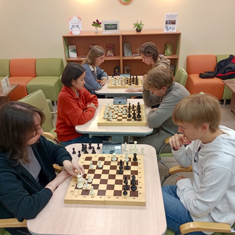 19 сентября 2025 г. в шахматном уголке читального зала Библиотечно-информационного комплекса (Ленинградский проспект, 51/1) состоялся матч команд юношей и девушек из числа наиболее сильных и активных участников LibChess — cообщества любителей шахмат при Библиотечно-информационном комплексе (БИК) Финансового университета.