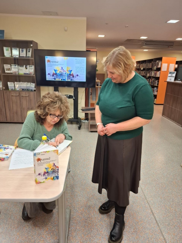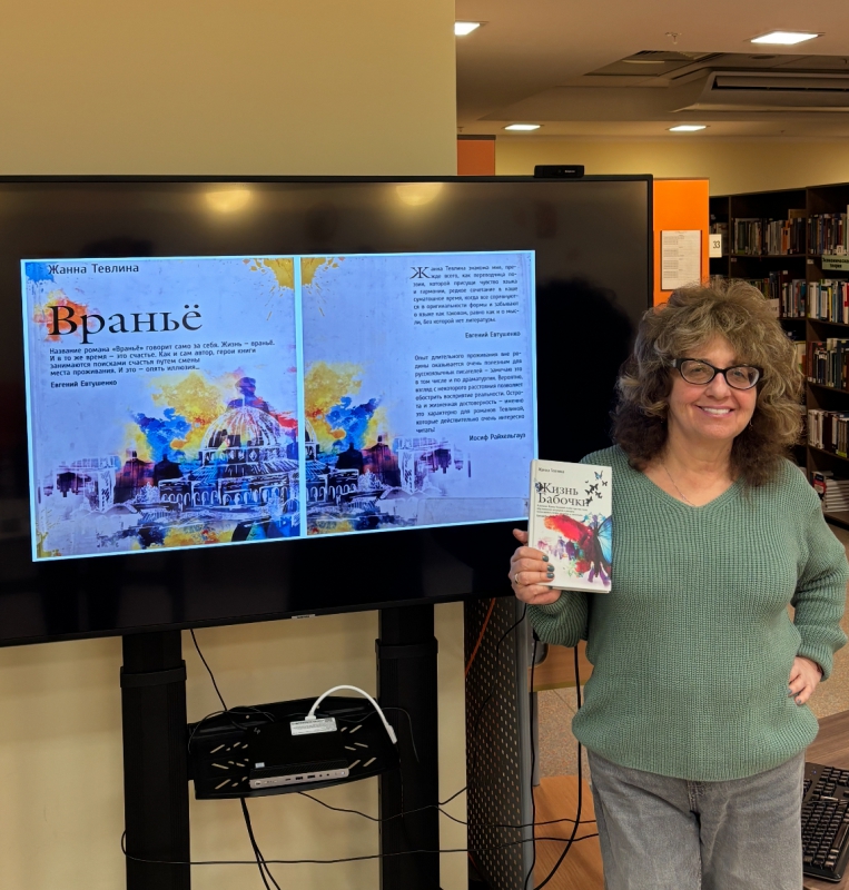 «Как будто жизнь качнется вправо, качнувшись влево...» 01 декабря 2025 г. Литературный клуб Финансового университета в очередной раз открыл свои двери. Первый день зимы у нас был теплым и душевным, в Литературный клуб Финансового университета пришла Евгения Абрамовна Ненюк, старший преподаватель Кафедры английского языка и профессиональной коммуникации. Студенты, преподаватели, сотрудники Библиотечно-информационного комплекса встретились с автором в читальном зале на Ленинградском проспекте, 51.1. Евгения Абрамовна пишет под псевдонимом Жанна Тевлина, и разговор был о её романе «Враньё». Книга вышла в издательстве «РИПОЛ классик», основанном в 1989 г. и признанном в 2024 году "Издательством года" (Премия «Ревизор»). Издание представлено в фонде художественной литературы Библиотечно-информационного комплекса Финансового университета: Тевлина, Ж. Вранье / Ж. Тевлина.-Москва : Рипол Классик, 2016 Евгения Абрамовна рассказала, как необычно, во сне появился замысел книги, насколько совпадает или не совпадает жизнь автора и героя, чем отличается хорошо написанная книга от плохо написанной. Евгения Абрамовна прочитала знаковые отрывки из своей книги, чтобы мы почувствовали легкий юмор, изящную иронию авторского языка. И можно согласиться со знаменитым поэтом Евгением Евтушенко, что нашему уважаемому автору «присущи чувство языка и гармонии, редкое сочетание в наше суматошное время, когда все соревнуются в оригинальности формы и забывают о языке как таковом, равно как и о мысли, без которой нет литературы». Евтушенко писал: «Название романа «Враньё» говорит само за себя. Жизнь – враньё. И в то же время – это счастье. Как и сам автор, герои книги занимаются поисками счастья путем смены места проживания. И это – опять иллюзия…». Вместе с автором все задались вопросами: возможно ли жить без вранья, как изменится жизнь, если не врать другим, не обманывать себя, можно ли убежать от себя, сменив место жительства? Книга открыла новый взгляд на проблемы истинных чувств к близким людям, к стране, в которой живёшь. Лирической нотой прозвучал Рождественский романс Иосифа Бродского «Как будто жизнь качнется вправо, качнувшись влево...», который стал созвучен истории жизни главного героя романа. «Твой Новый год по темно-синей волне средь моря городского плывет в тоске необъяснимой, как будто жизнь начнется снова, как будто будет свет и слава, удачный день и вдоволь хлеба, как будто жизнь качнется вправо, качнувшись влево». Евгения Абрамовна предложила провести поэтический вечер, на котором можно прочитать переводы разных авторов и собственные стихи. Ждём с радостью новой встречи с Евгенией Абрамовной и с вами, кто пишет или переводит стихи, в Литературном клубе Финансового университета!