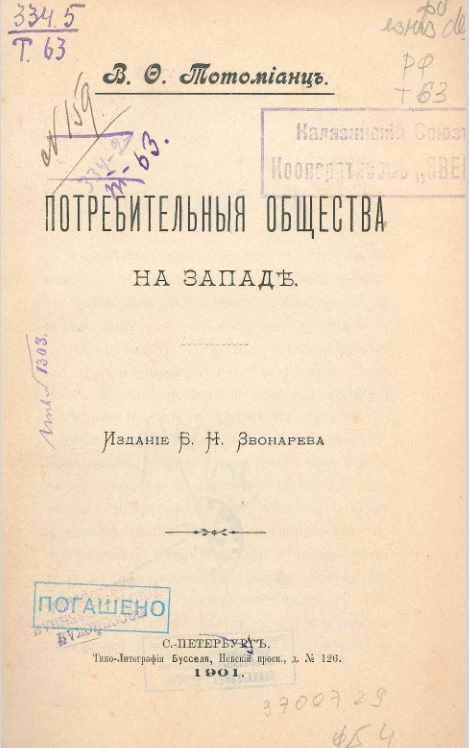 Тотомианц, В.Ф. Потребительные общества на Западе, 1901