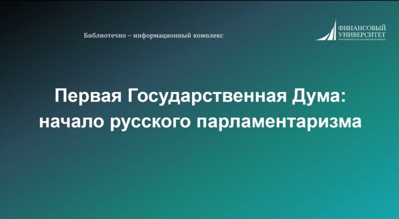Первая Государственная Дума: начало русского парламентаризма